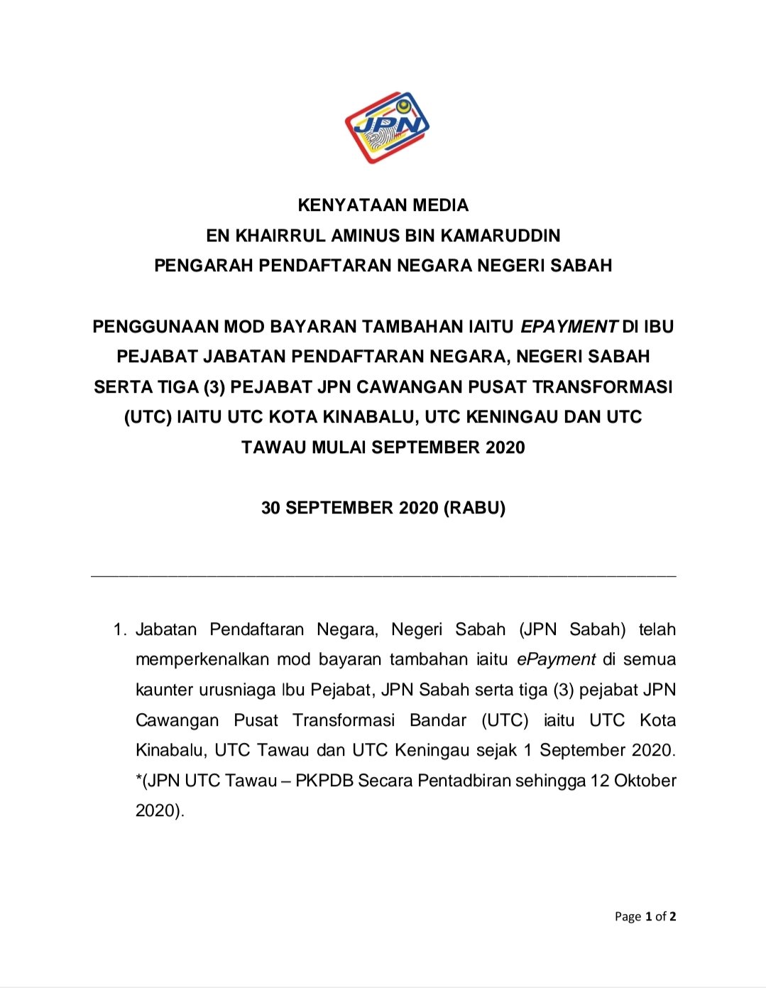 Jabatan Pendaftaran Negara Malaysia Makluman Operasi Pejabat Pejabat Jabatan Pendaftaran Negara Negeri Sabah Di Zon Tawau Dan Cawangan Pusat Transformasi Bandar Utc Keningau Untuk Sebarang Maklumat Lanjut Para Pelanggan Boleh Melayari Laman